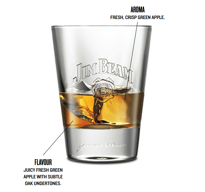Jim Beam Apple se elabora con todo el orgullo y la experiencia de los 220 años de historia de fabricación de bourbon de Beam. Además, es una combinación perfectamente equilibrada de licor de manzana y Jim Beam Kentucky Straight Bourbon Whiskey. El resultado es una explosión fresca y definida de manzana verde con un final de bourbon cálido. Disfrútelo solo, con hielo o con soda y una rodaja de limón.