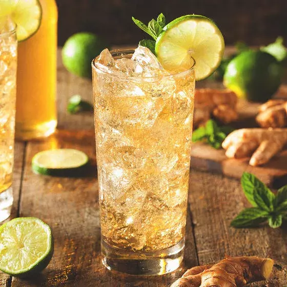 Prepárelo sobre hielo en un vaso largo alto. Adorne con una rodaja de lima.